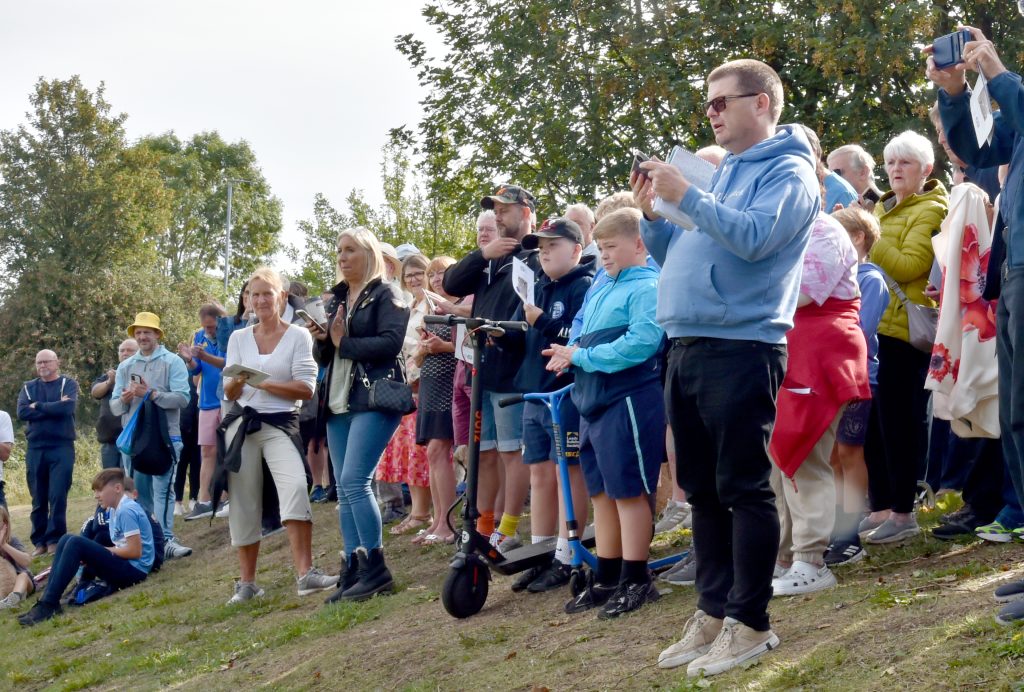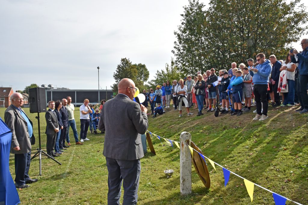 A crowd of at least one hundred and fifty gathered for this celebration of local sport. At the unveiling, we heard from Paul Reaney, CEO of the Leeds United Foundation, Frances Milner, local MP Mark Sewards and nominee, Michael Meadowcroft. We were joined by many members of the community committee who campaigned tirelessly to save the ground from redevelopment in recent years.