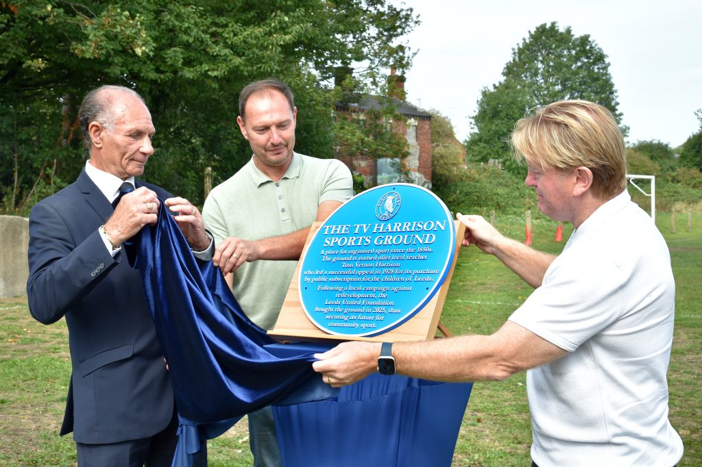 The plaque was unveiled by Leeds United Legends Paul Reaney, Noel Whelan and Stuart McCall, who, like many Leeds United players, cut their teeth at this sports ground.